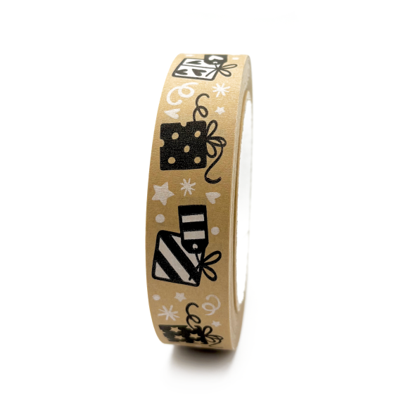 Presents & Bows Paper Gift Wrap Tape, 25mm x 50m, Brown/Black/White