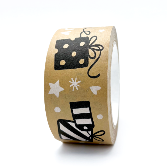 Presents & Bows Paper Packing Tape, 50mm x 50m, Brown/Black/White